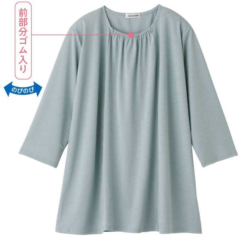 5. 婦人7分袖衿元ギャザーチュニックサイズ M~L、LL