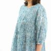 婦人インド綿ピンタック七分袖プルオーバーブラウス(ブロックプリント)