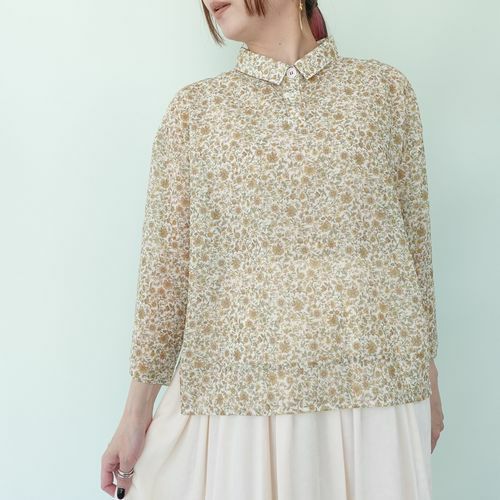 シアーな素材に、繊細な花柄が上品なシャツです。