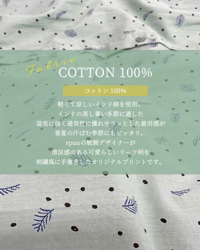 3. 【インド綿】綿100%レディース トップス リーフ柄刺繍風プリントシャツブラウスM~L