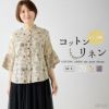 【コットンリネン】麻混コットンリネン レディース トップス ドット柄刺繍風プリントシャツブラウスベージュ