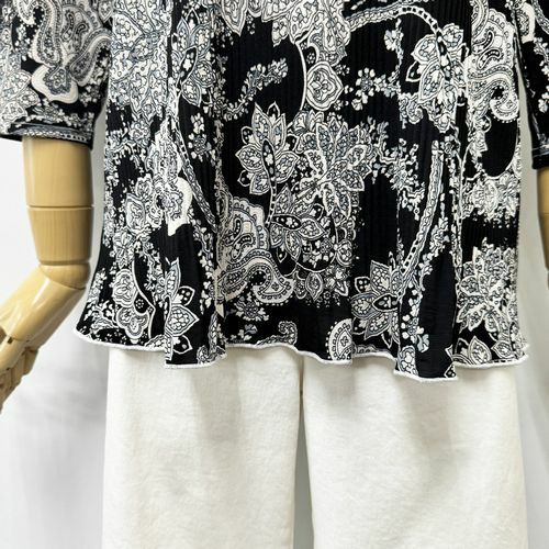 婦人ジルコン付プリーツ切替プルオーバーダマスク柄