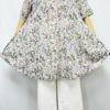5. Aライン麻混チュニックフラワーレディースミセスアパレル系グレー系M~L