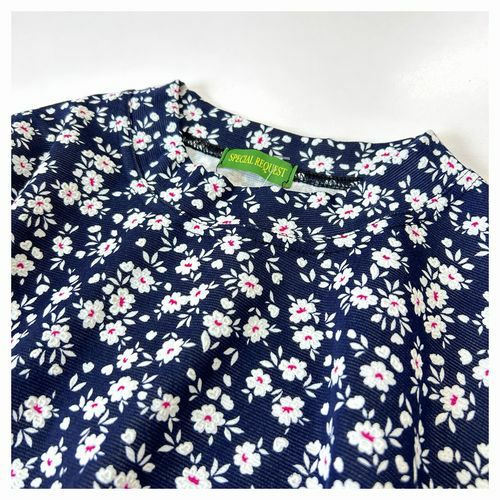 婦人小花柄プリント長袖Tシャツカットソーネイビー