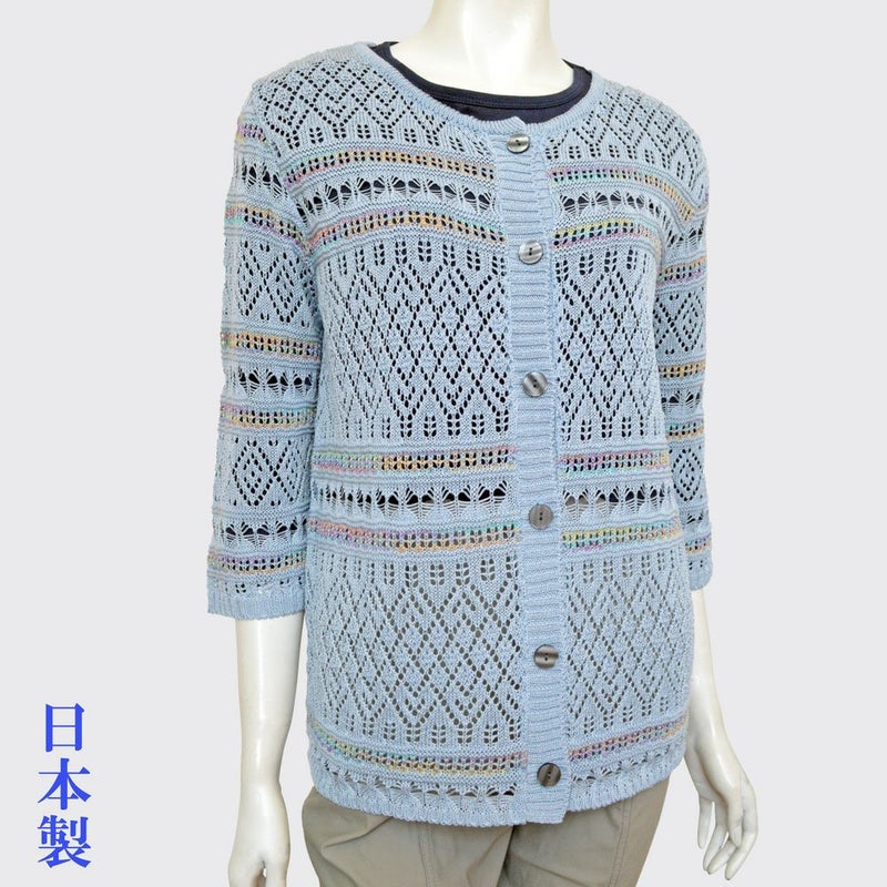 4. 婦人七分袖透かし柄カーディガン(柄)サイズ M~L 日本製