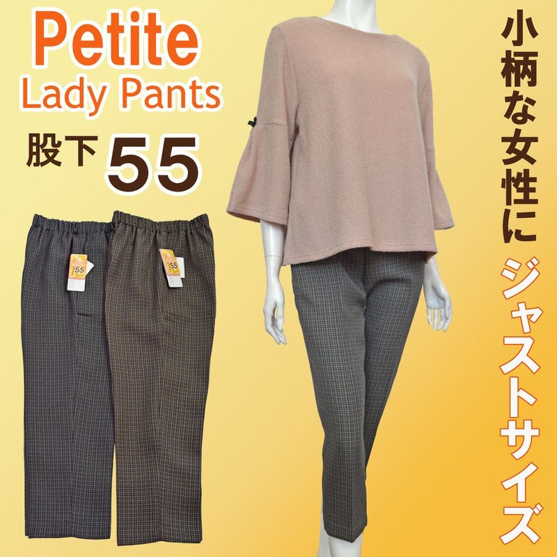 小柄な女性にジャストサイズのプチレディサイズパンツ。