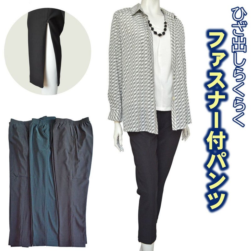 3. 婦人ひざ出しらくらくファスナー付ストレッチパンツ 股下60cmサイズ M~5L