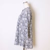 6. 婦人七分袖花レース模様ピンタックカットソーネイビーサイズM~L