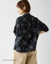 【コットンリネン】麻混レディース トップス花柄刺繍風プリントシャツブラウス