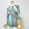 婦人レディース綿混シャドーボーダーミセスTシャツラインブラシ柄