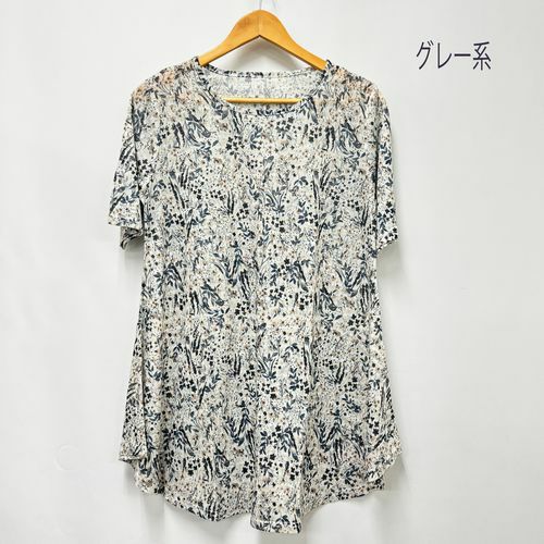 5. Aライン麻混チュニックフラワーレディースミセスアパレル系グレー系M~L