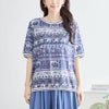 6. 婦人レディース綿混エスニック柄象プリント半袖TシャツカットソーネイビーカットソートップスM~L