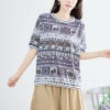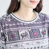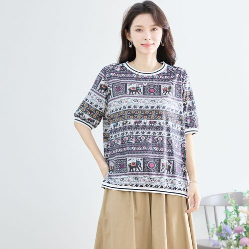 アジアンテイスト漂う象モチーフと草花模様が全面に施された、存在感たっぷりのプリントトップス。