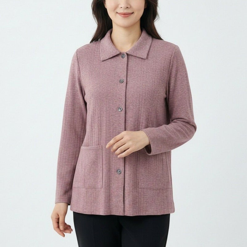 5. 前身プリーツカーディブラウスジャケット前ポケット付き大き目ボタンピンク系(女性)