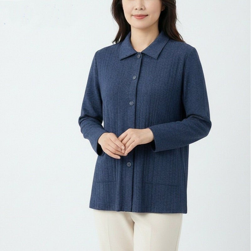 前身プリーツカーディブラウスジャケット前ポケット付き大き目ボタン(女性)