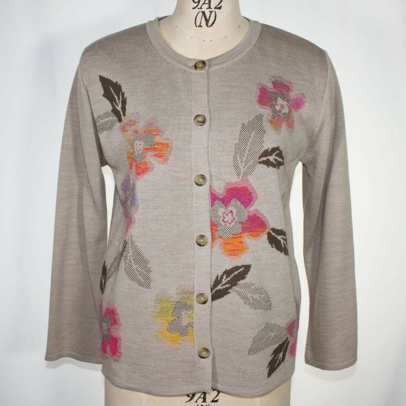 かすり糸を使い、華やかな花柄カーディガンです