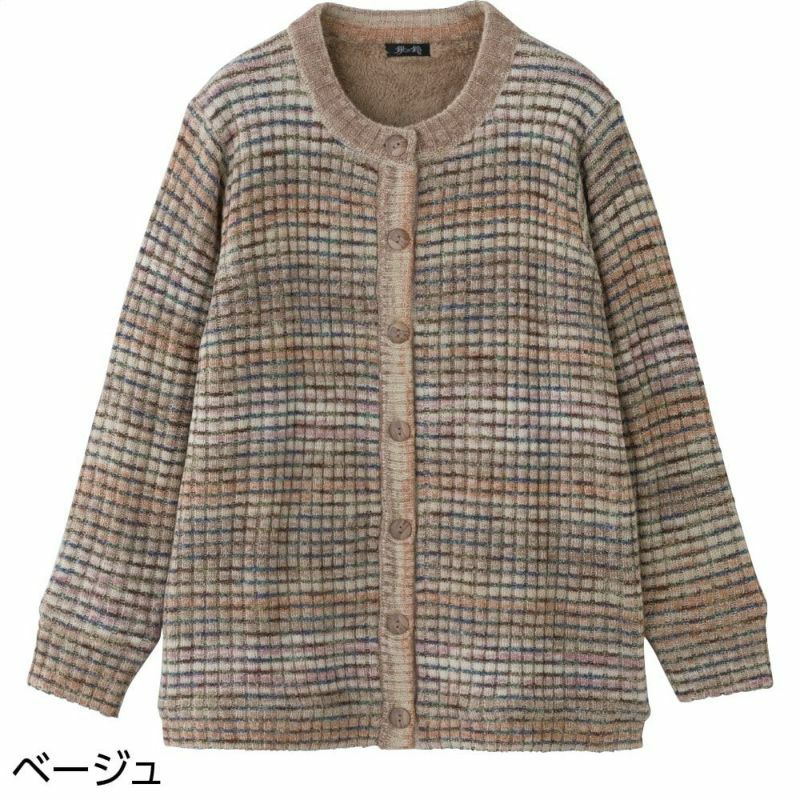 6. かすり調丸洗い裏ボアカーディガン(婦人)ベージュ