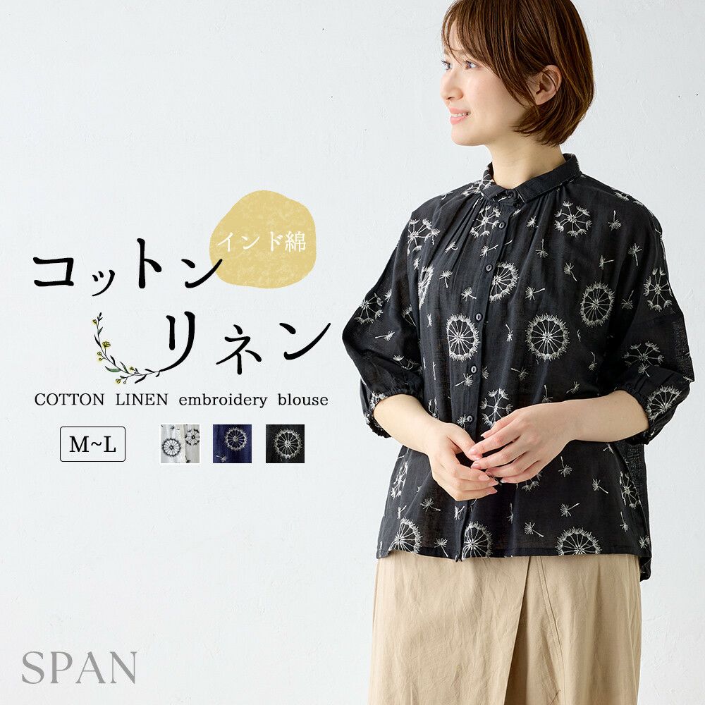 インド綿 綿 麻 レディース トップス プルオーバー ブラウス 花柄 刺繍風