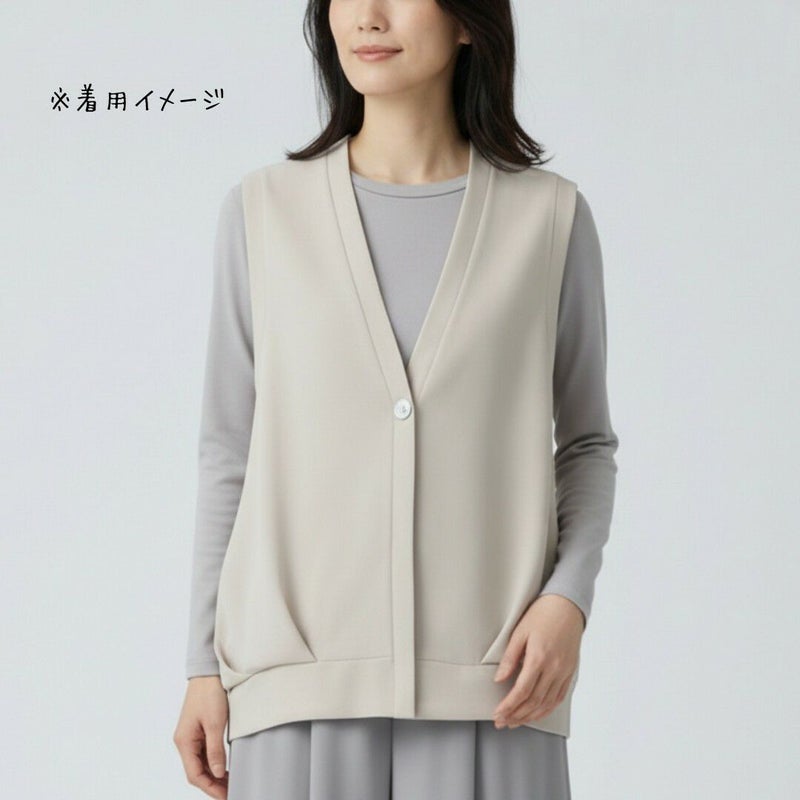 【新作】前開きワンボタン裾タック入りベスト(女性)
