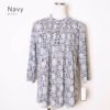 5. 婦人七分袖花レース模様ピンタックカットソーネイビーサイズM~L
