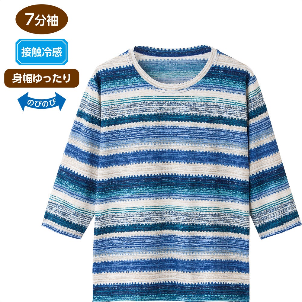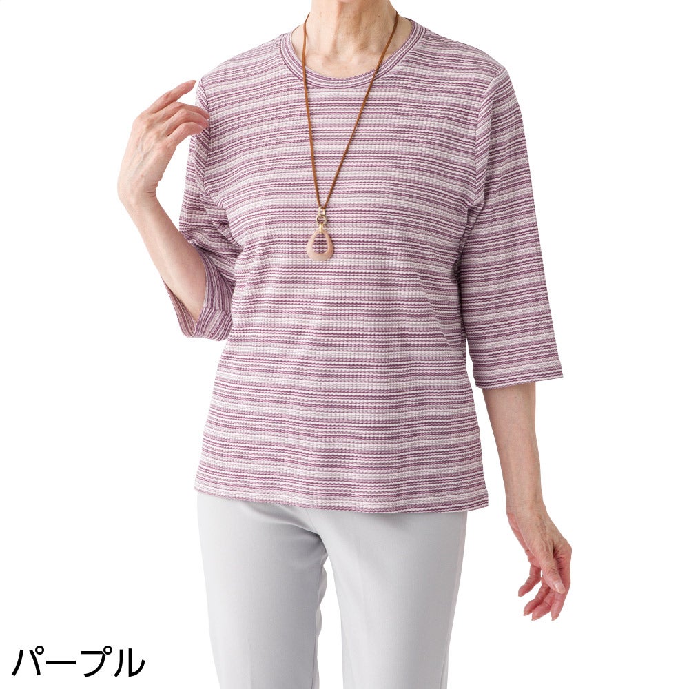 7分袖ボーダー柄ソフトTシャツ(婦人)