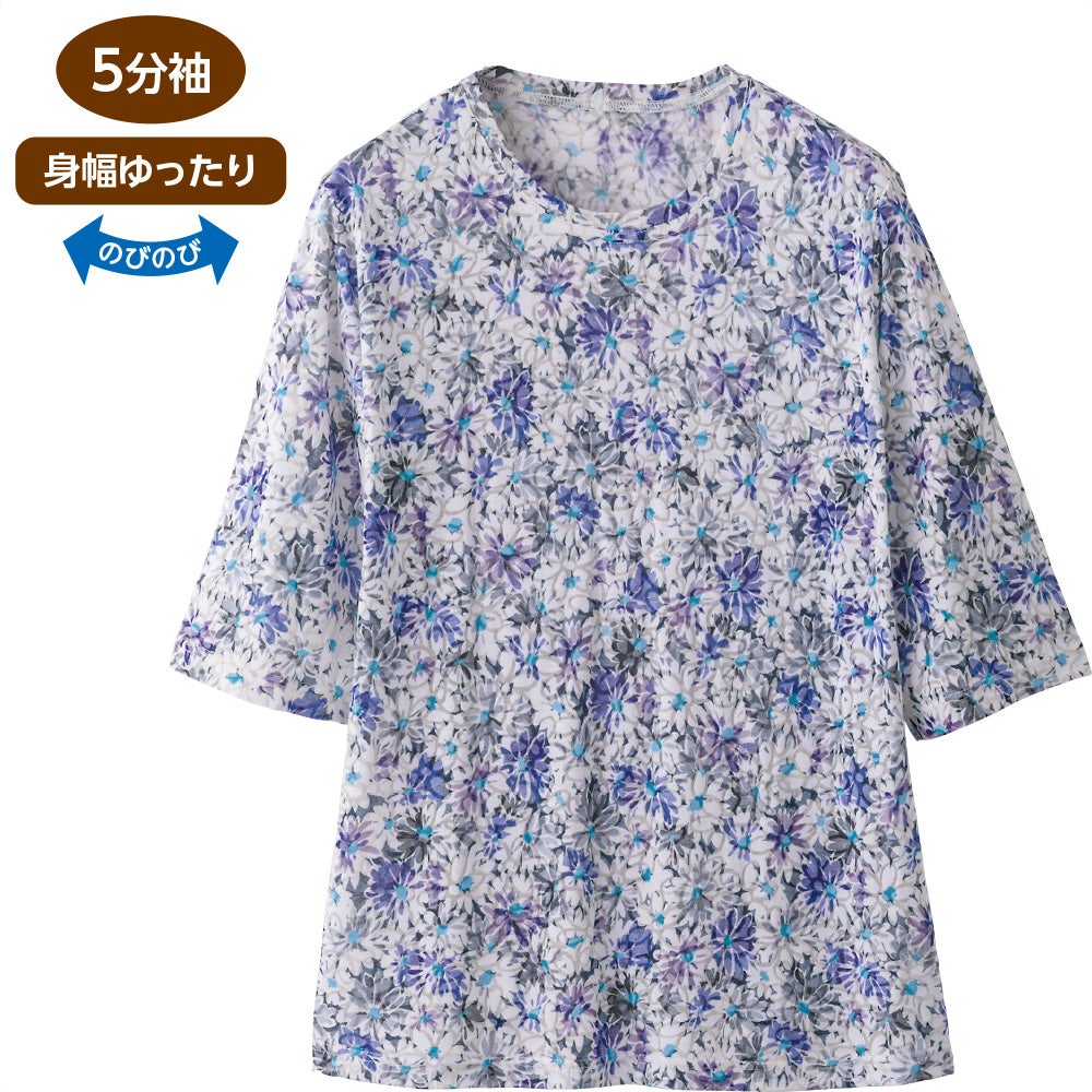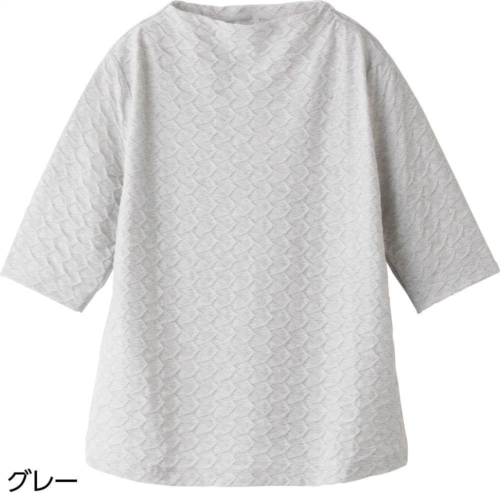 5分袖ふっくらやわらかジャカードTシャツ(婦人)