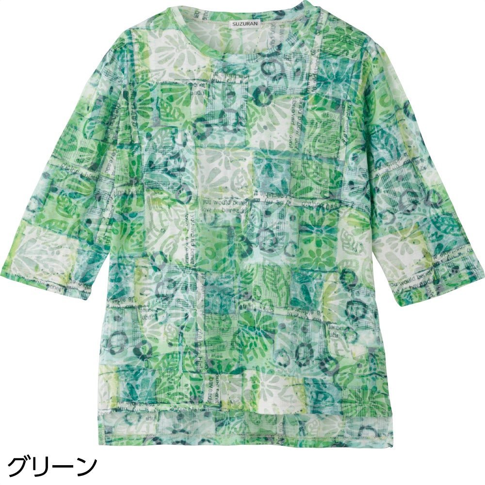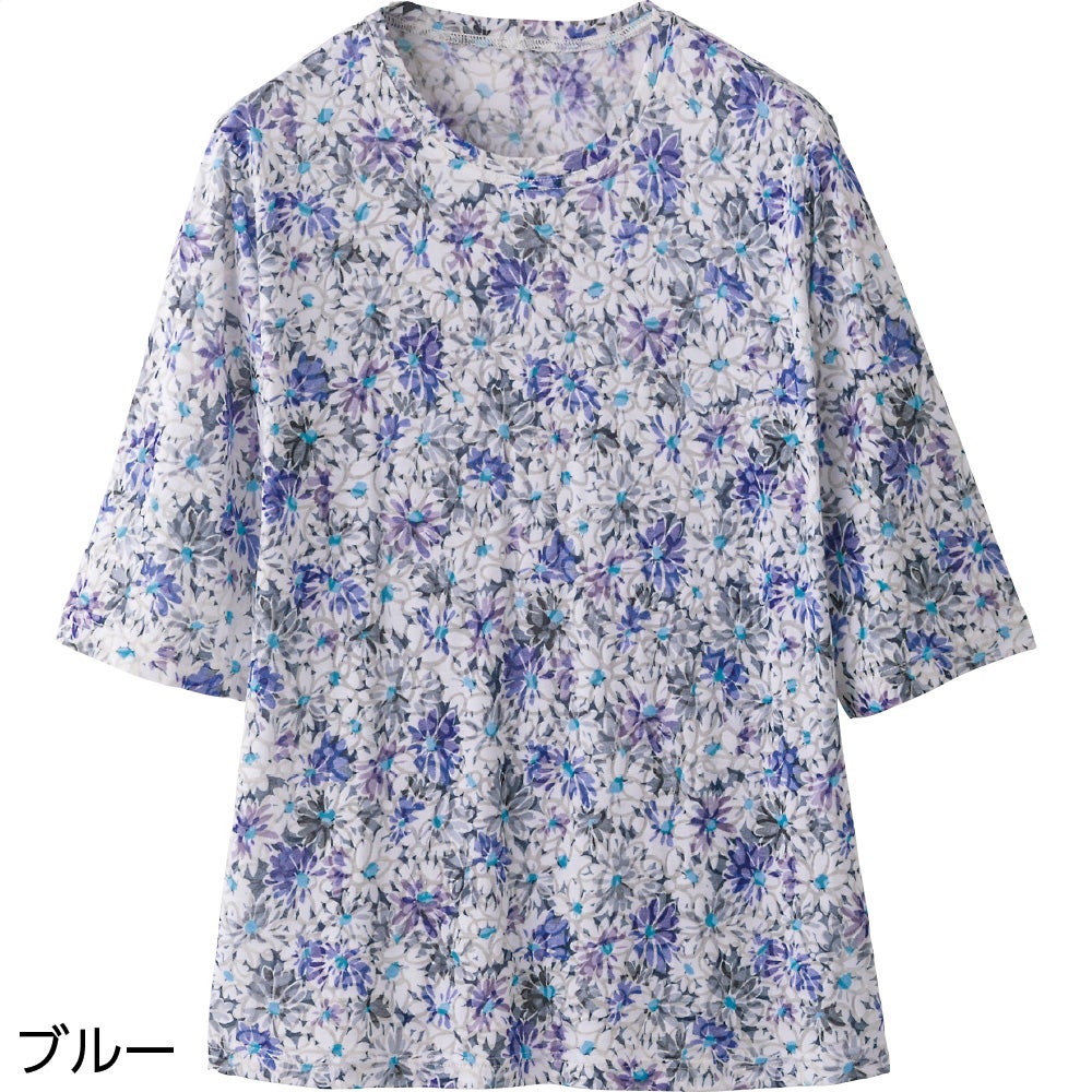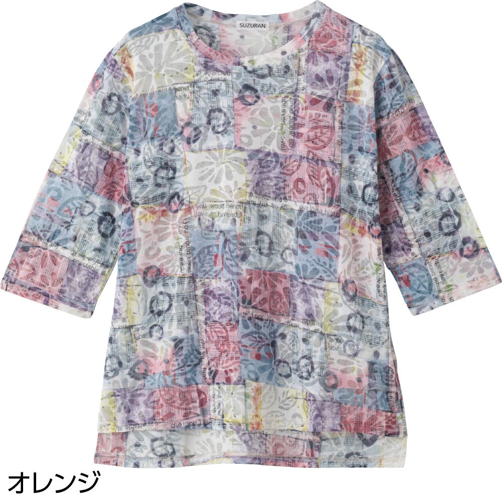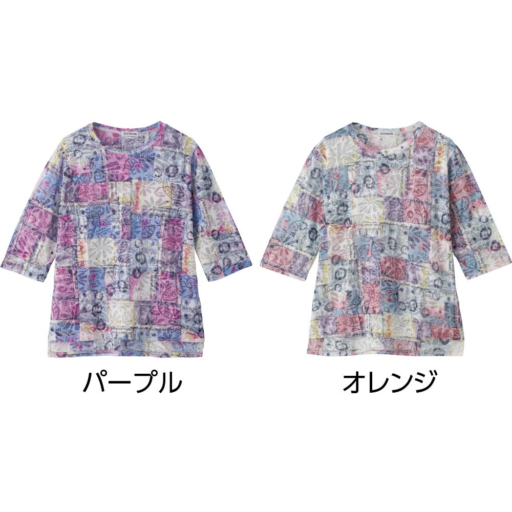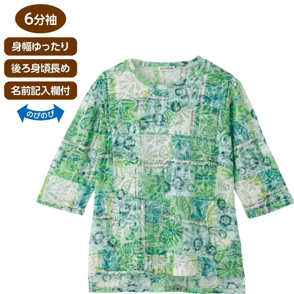 6分袖後ろ長めオパール柄Tシャツ(婦人)