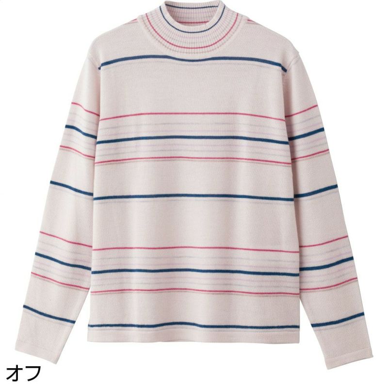 洗えるボーダー柄ハイネック(婦人)