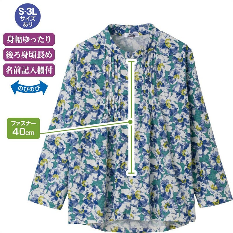 やさしい機能がいっぱいのロングファスナーブラウス。