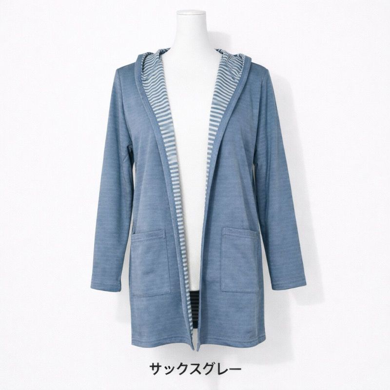 【春物新作】フード付きトッパージャケット裏ボーダーサックスグレー(女性)
