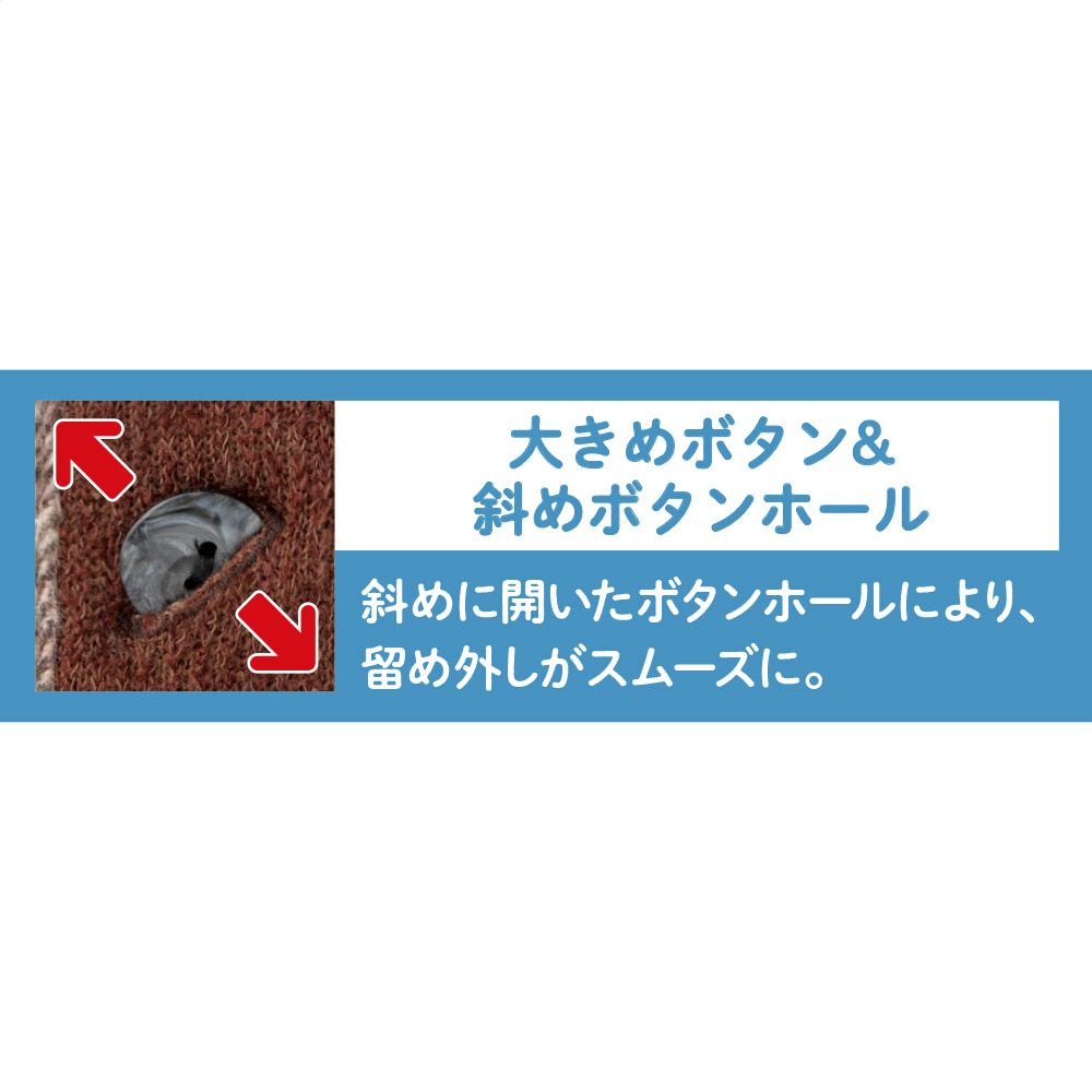 他の画像を見る 斜め釦ホールまえむきカーディガン(婦人) 大きめボタン&斜めボタンホール 着脱らくらく 前後着用可 ¥ 3,938 税込 前・後ろどちらからでも着られる! サイズ M、L カートに入れる お気に入りに登録する