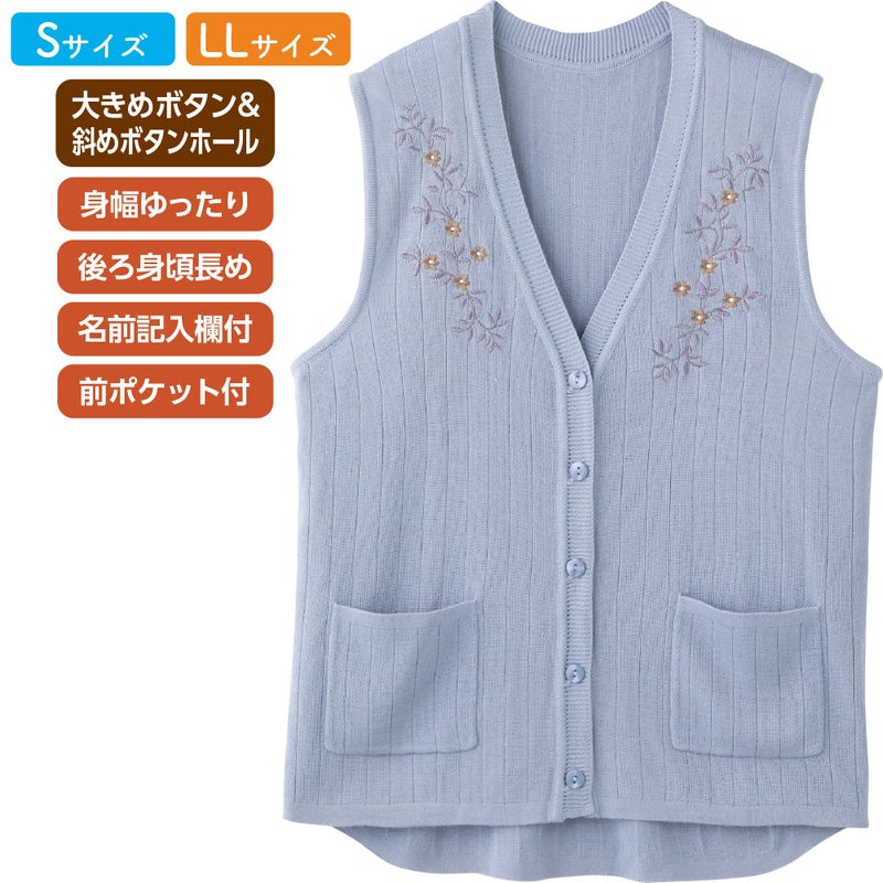 ニット斜め釦ホールV首ベスト(婦人)
