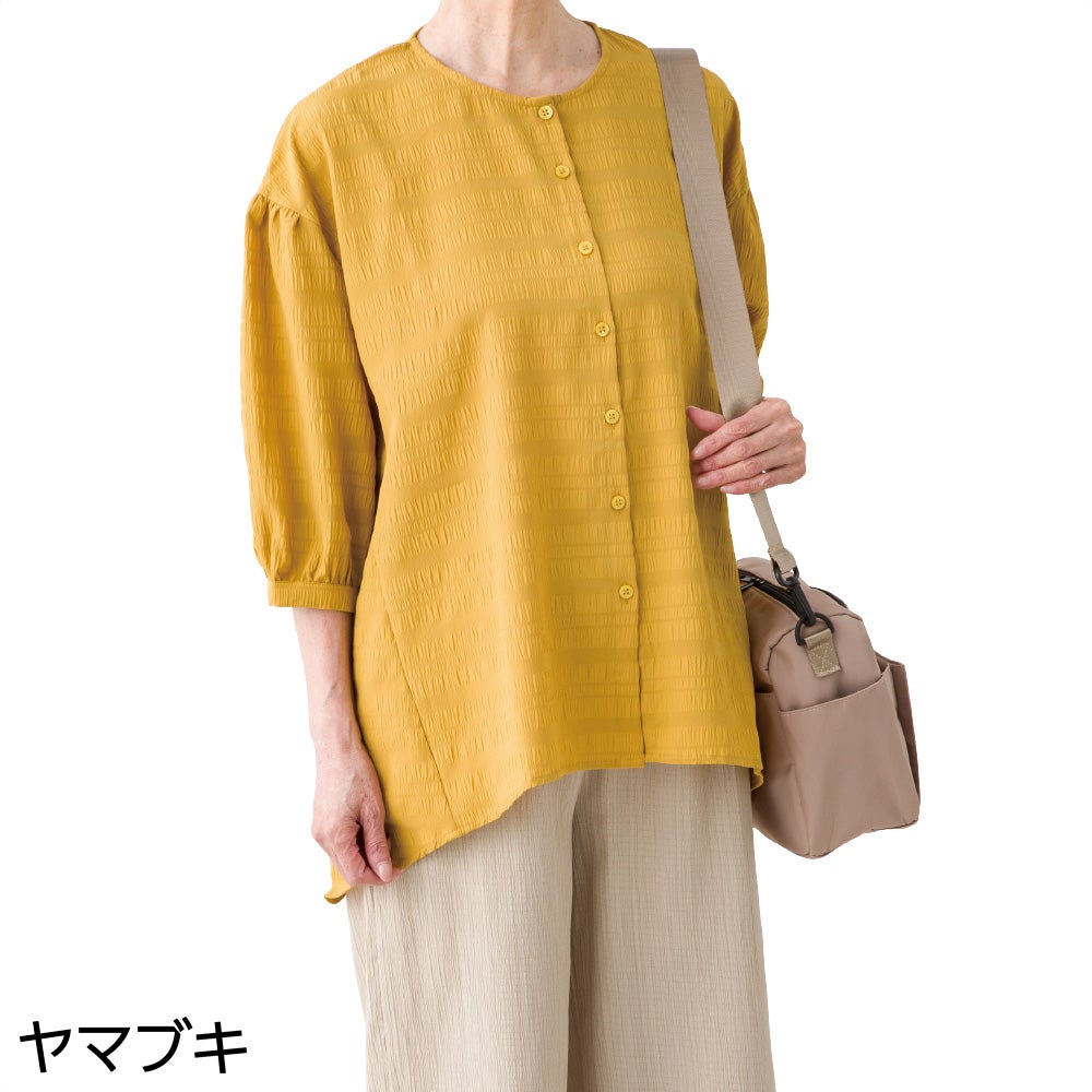 他の画像を見る 6分袖斜め釦ホールブラウス(婦人) 背中が出にくい設計 綿100% 大きめボタン&斜めボタンホール ¥ 4,928 税込 涼やかな綿100%楊柳素材。 サイズ M、L カートに入れる お気に入りに登録する