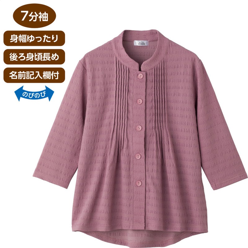 3. 7分袖斜め釦ホールピンタックブラウス(婦人)