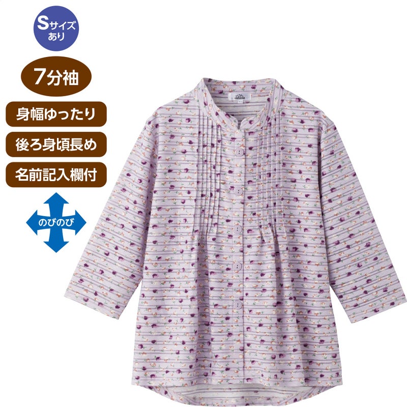 7分袖スナップ釦ピンタックブラウス(婦人)