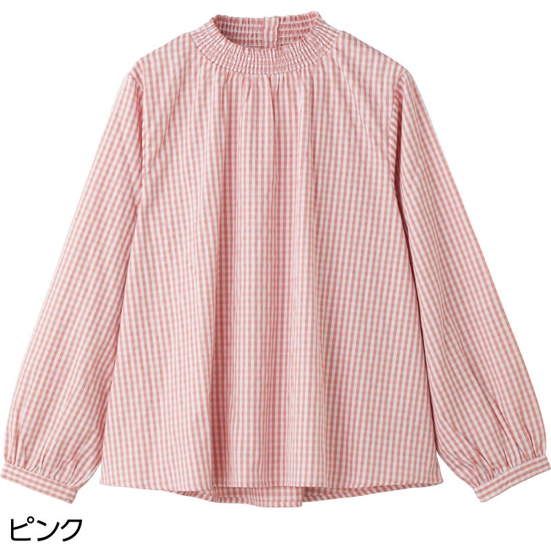 衿元がシャーリング仕様で伸びるのでスムーズに頭を通せます。