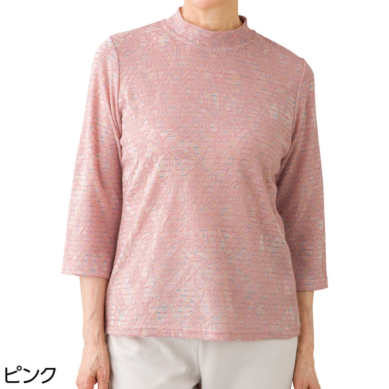 7分袖かすりジャカードTシャツ(婦人)