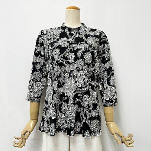 婦人ジルコン付プリーツ切替プルオーバーダマスク柄