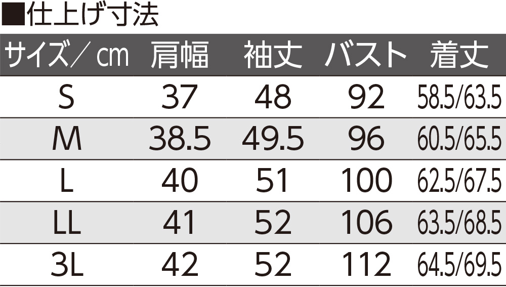 【サイズ】S、M、L、LL、3L