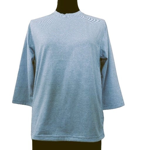 6. 7分袖綿100%細ボーダーTシャツ日本製(婦人)サイズ M~L