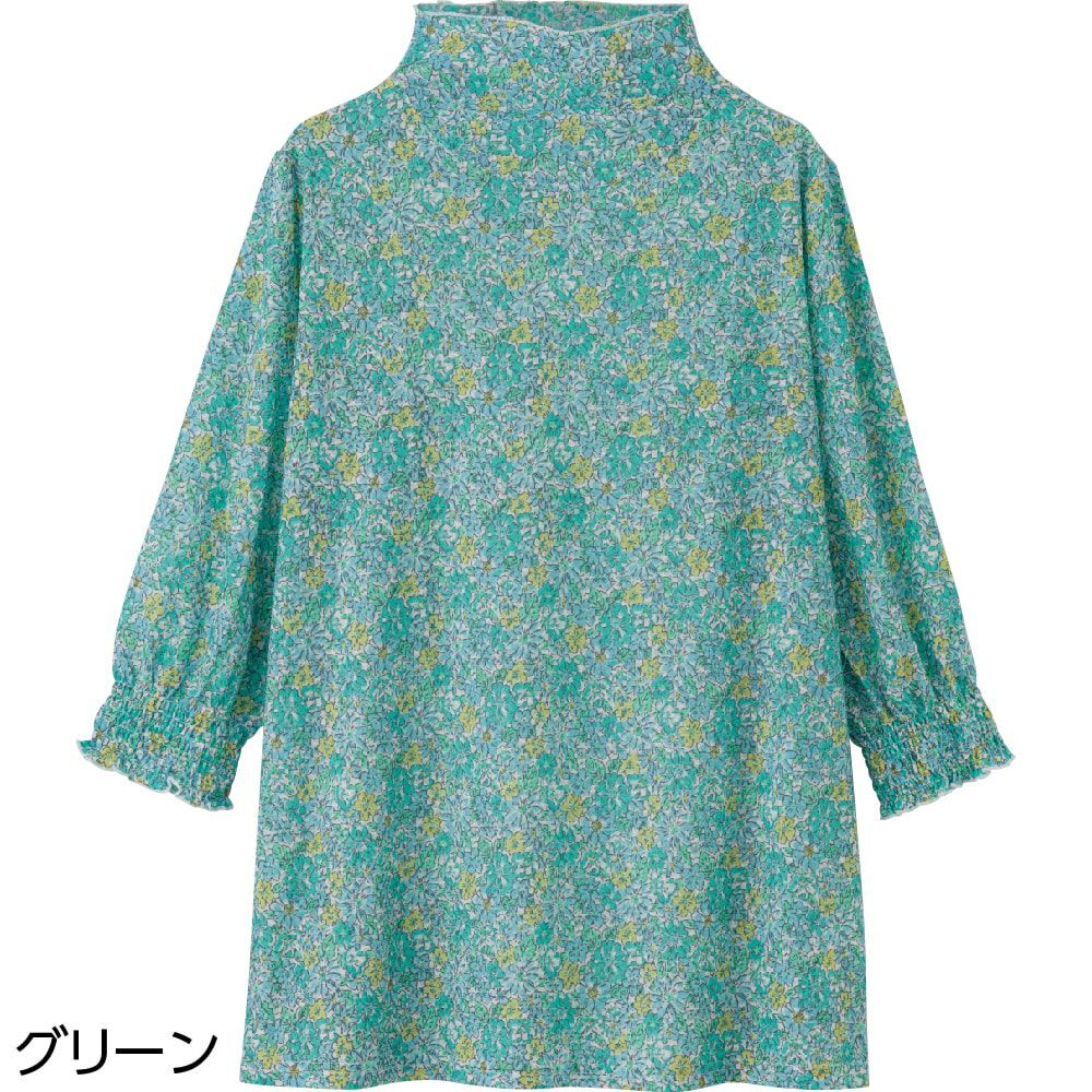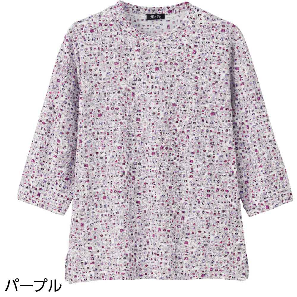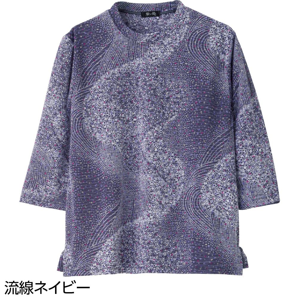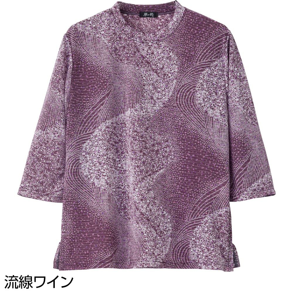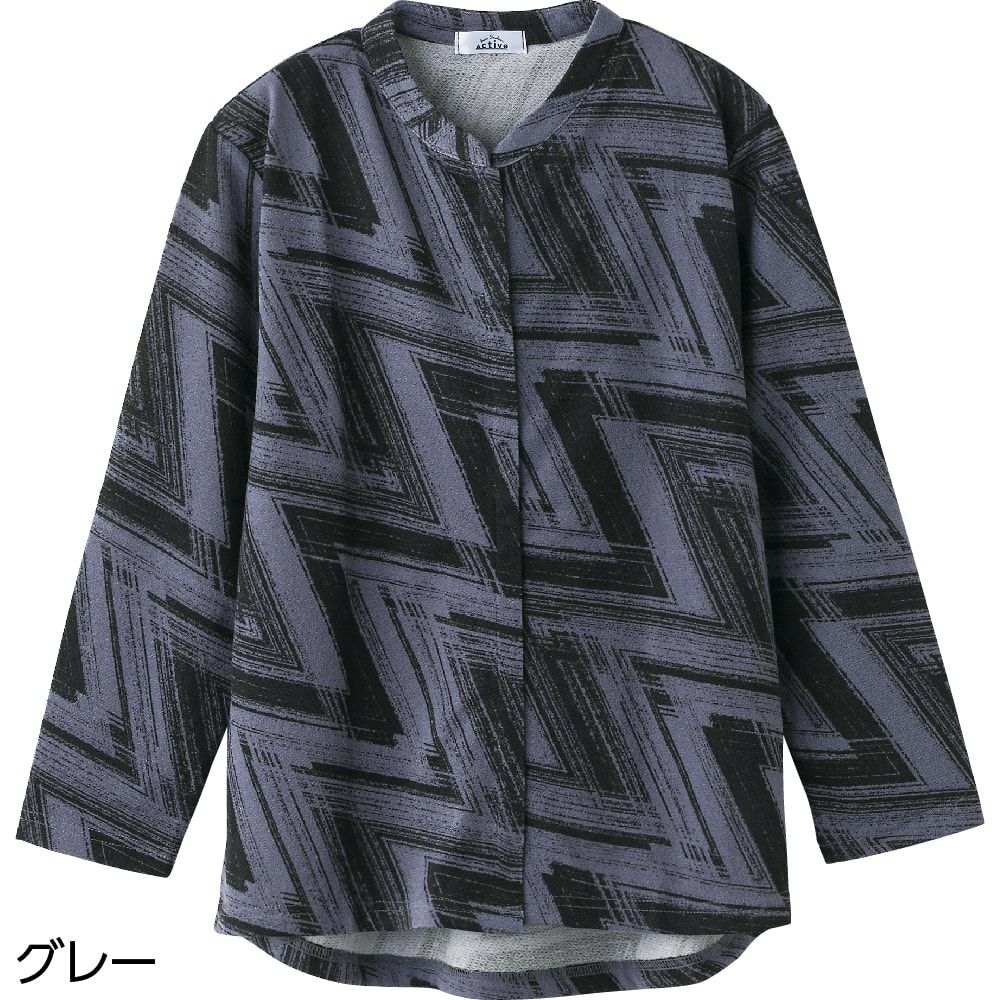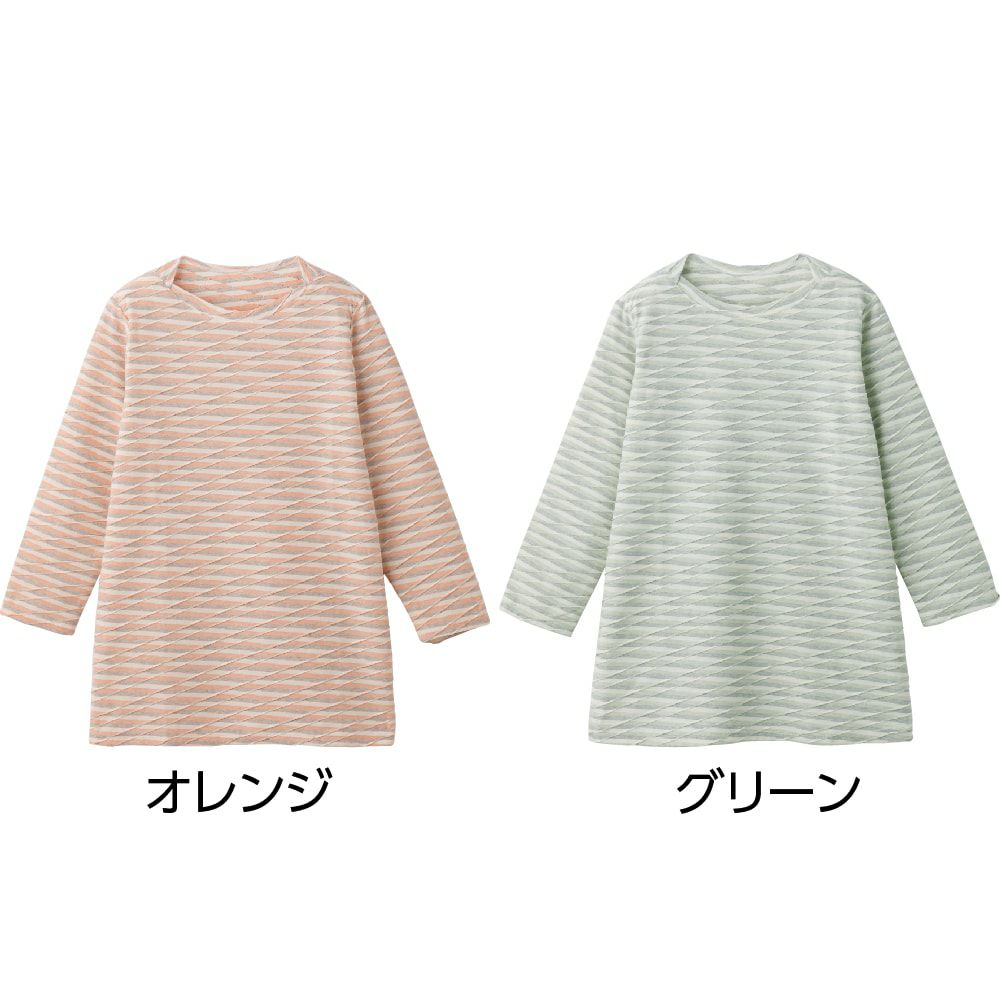 冷房の効いた夏の室内などでアウターとしておしゃれを楽しむシニアの長袖Tシャツです。