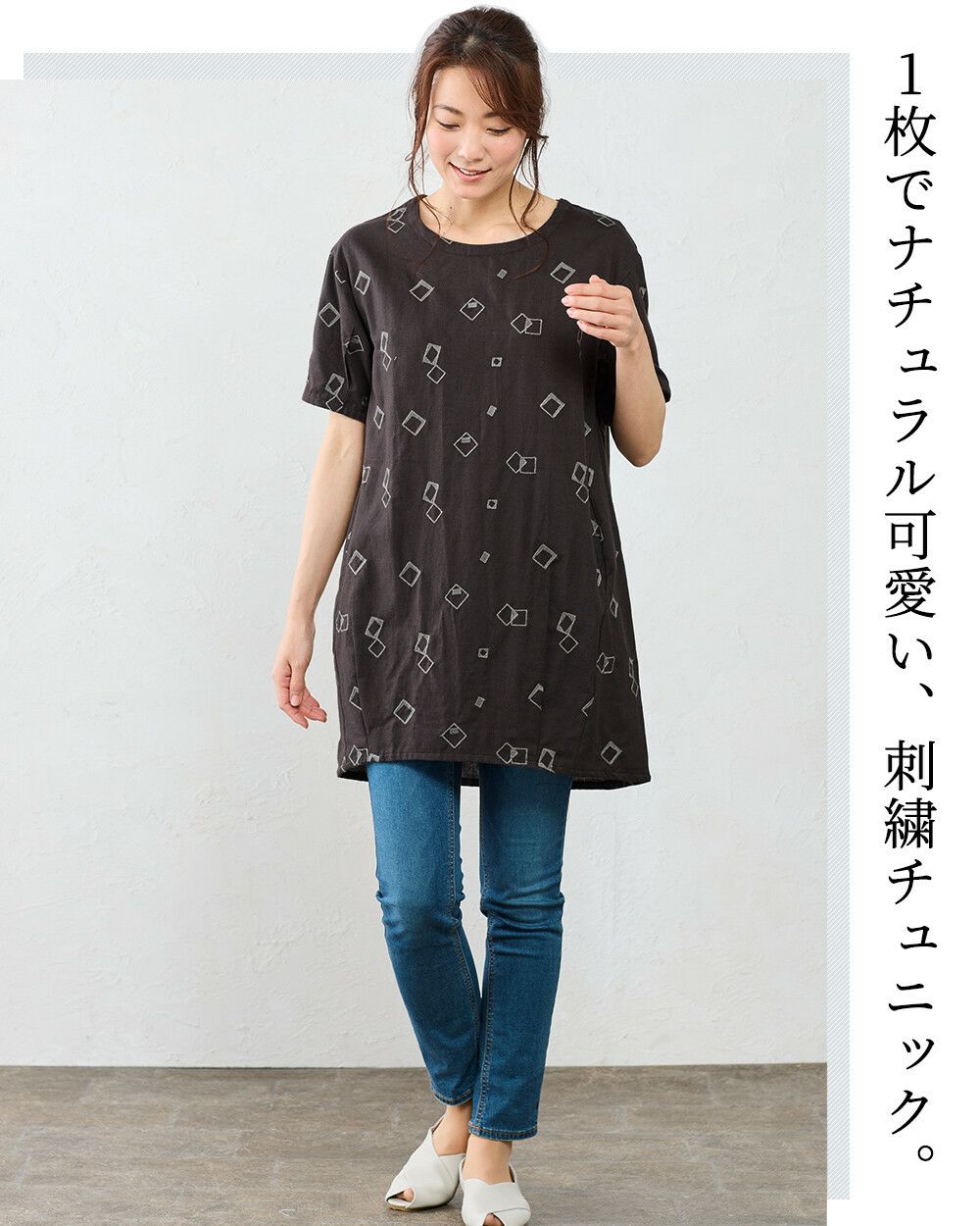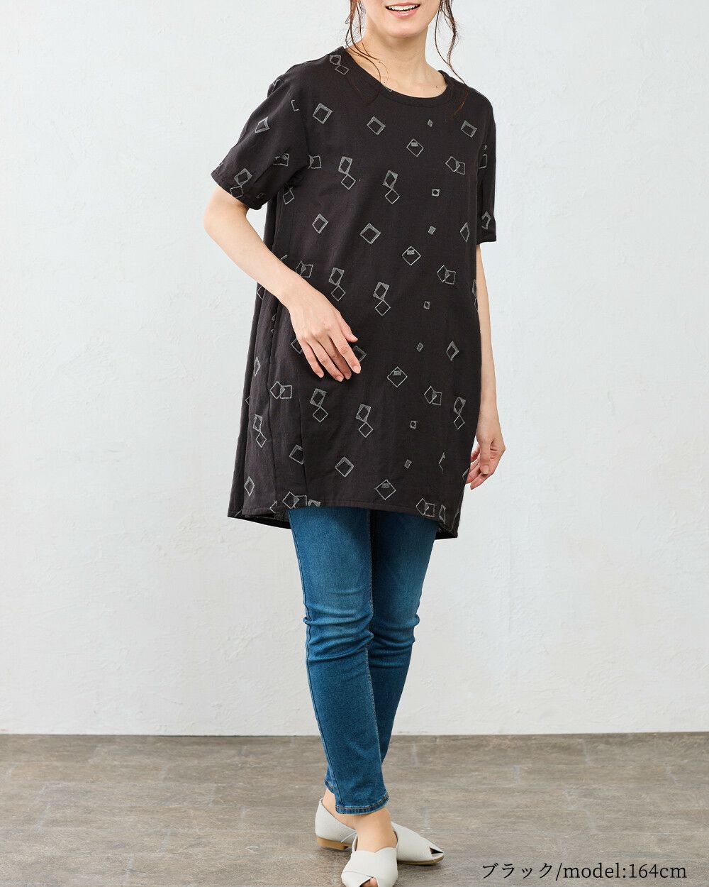 長め丈でお腹まわりをカバー。