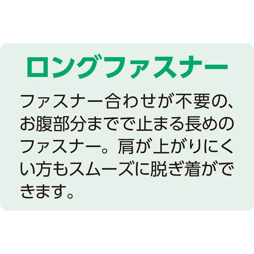 スナップボタンでの着脱で前が全開になるため、上に手を上げて着るのが困難な方でも