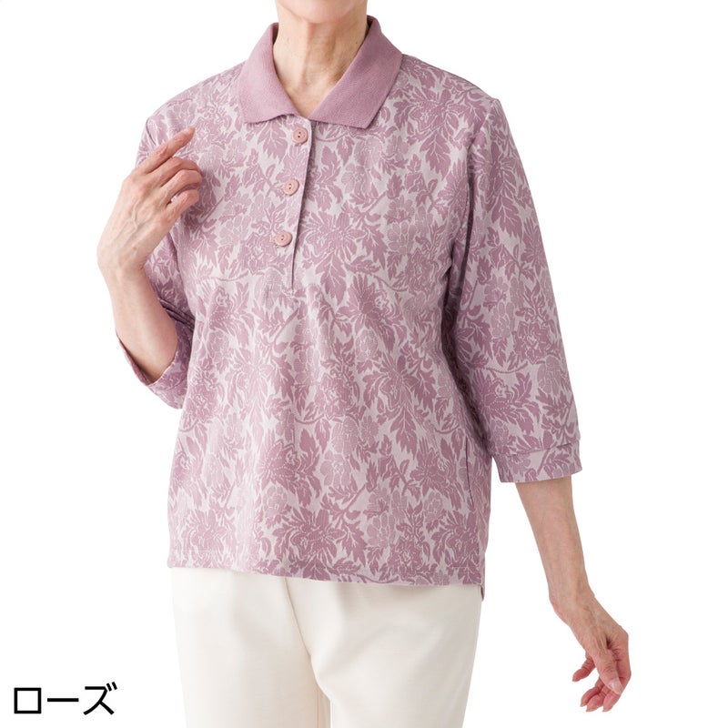 6. 7分袖斜め釦ホールポロシャツ(婦人)