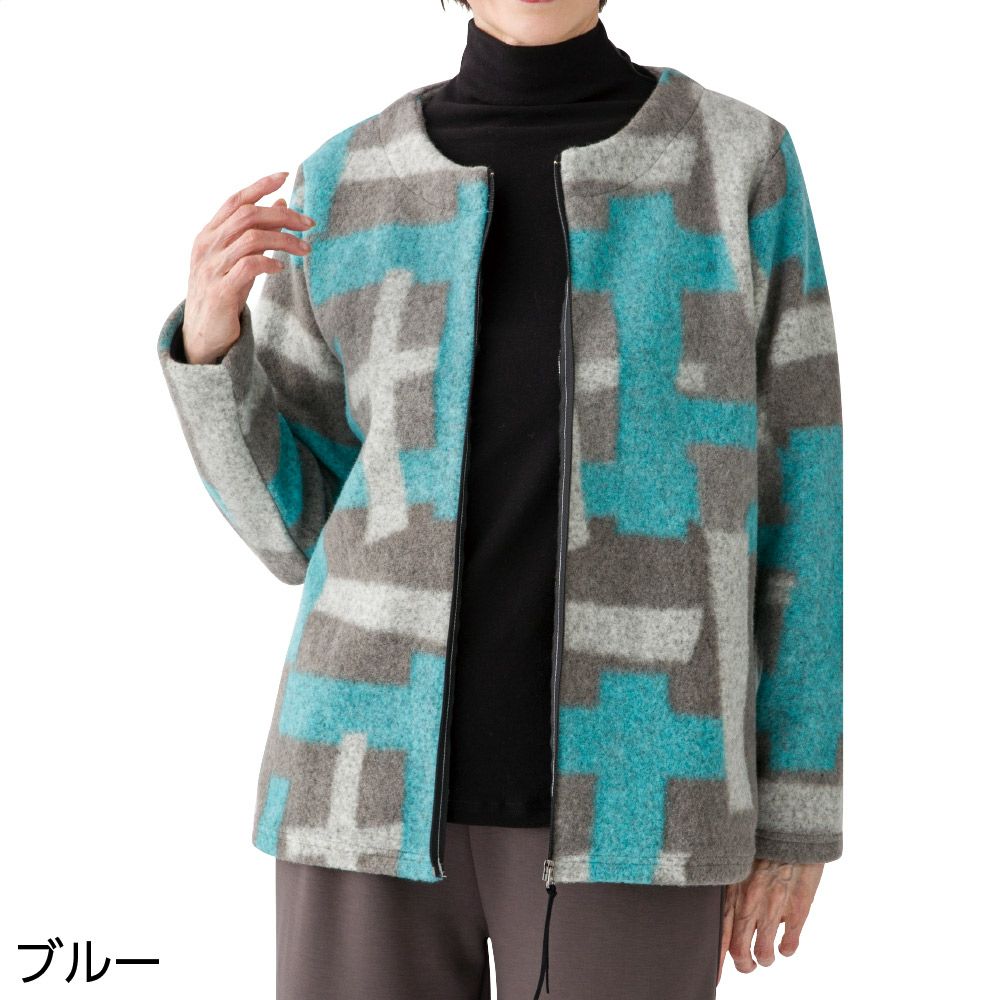 起毛格子柄ジップジャケット(婦人)
