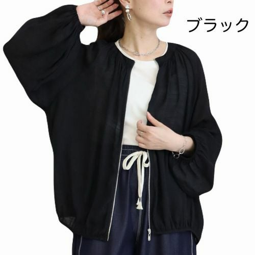 6. シフォンっぽい柔らかな素材ギャザーゆったりレディースブルゾンサイズ M~L