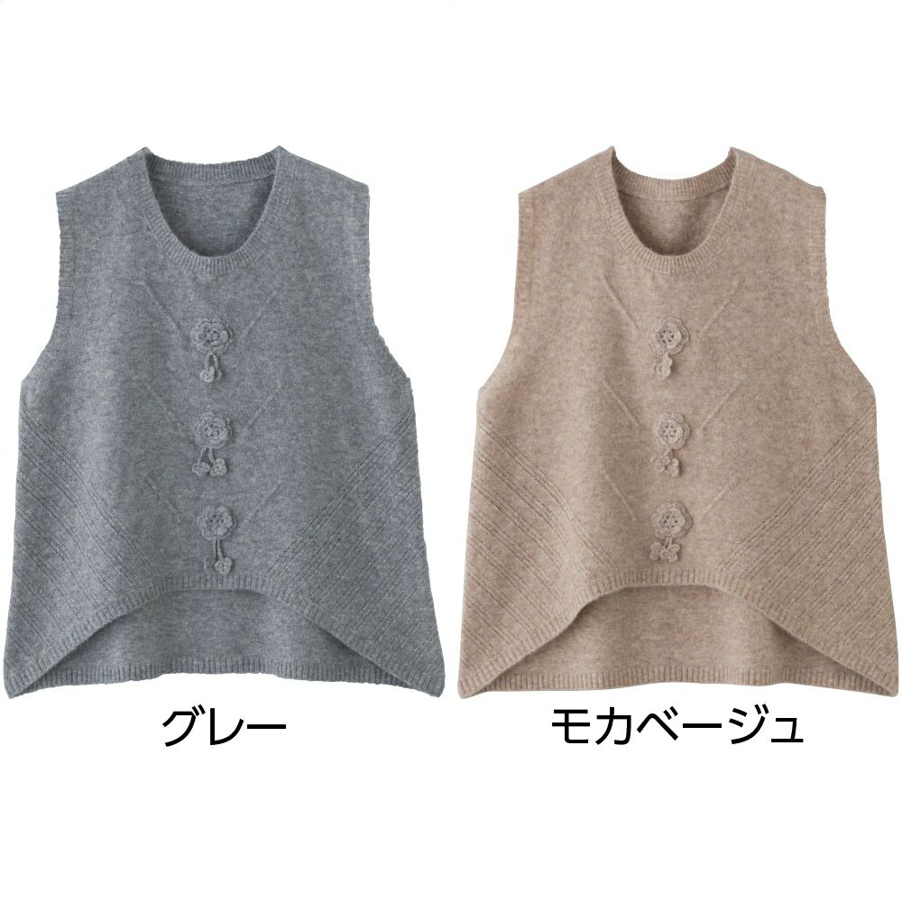 もちもちしたやわらかな肌触りでご自宅の洗濯機で丸洗いができるニットベストです。