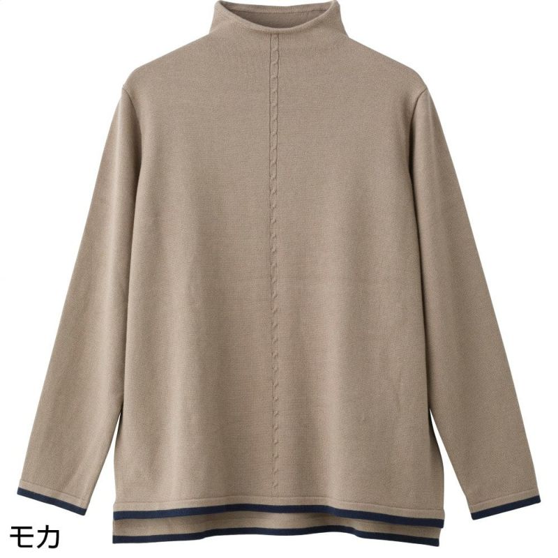 センターのケーブル編み模様でスッキリ感のあるスタイルに♪
