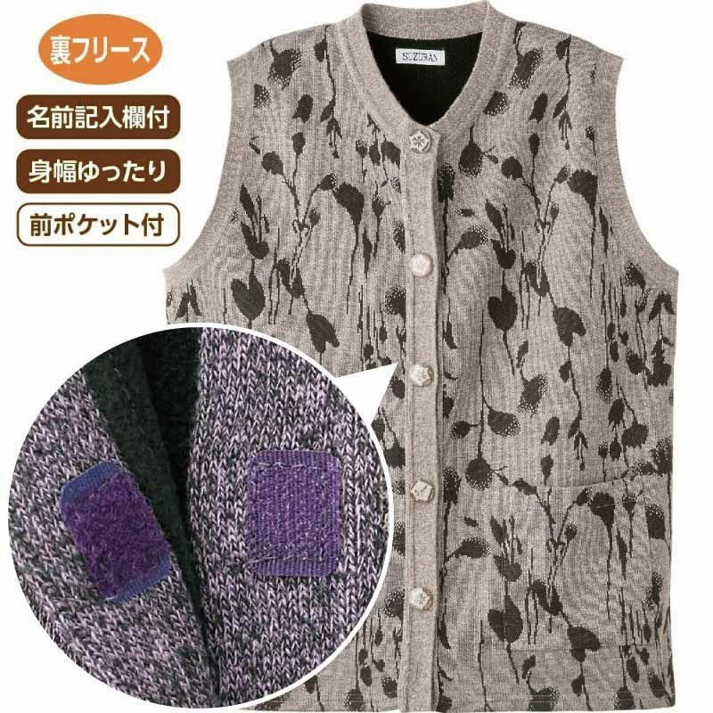 5. 婦人背中あったかい裏起毛シャギーフリースベスト・カーディガン