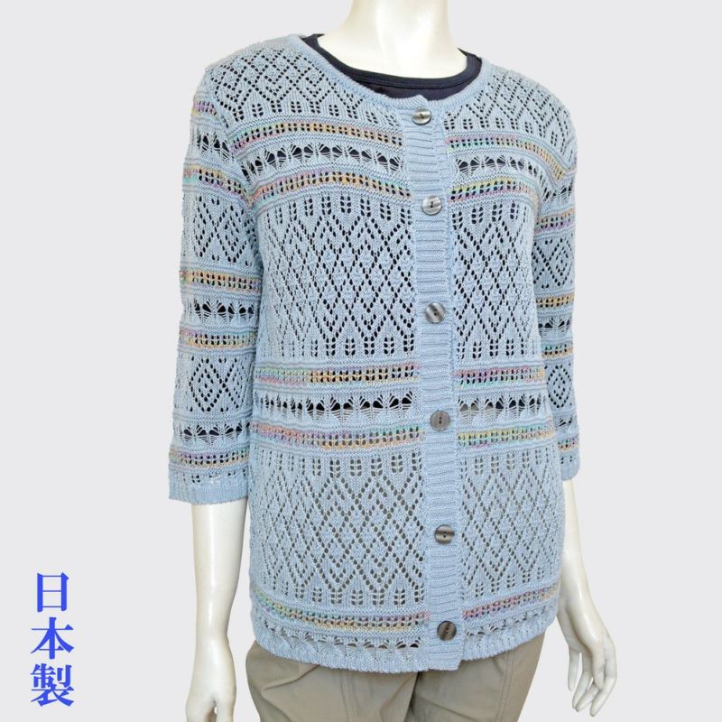 3. 婦人七分袖透かし柄カーディガン(柄)サイズ M~L 日本製